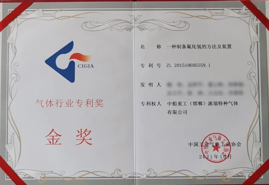 此次獲獎(jiǎng),是派瑞特氣公司繼2020年“一種制備三氟化氮?dú)怏w的裝置及應(yīng)用”專利獲評(píng)發(fā)明專利金獎(jiǎng)后,連續(xù)第2年獲得該項(xiàng)榮譽(yù)。