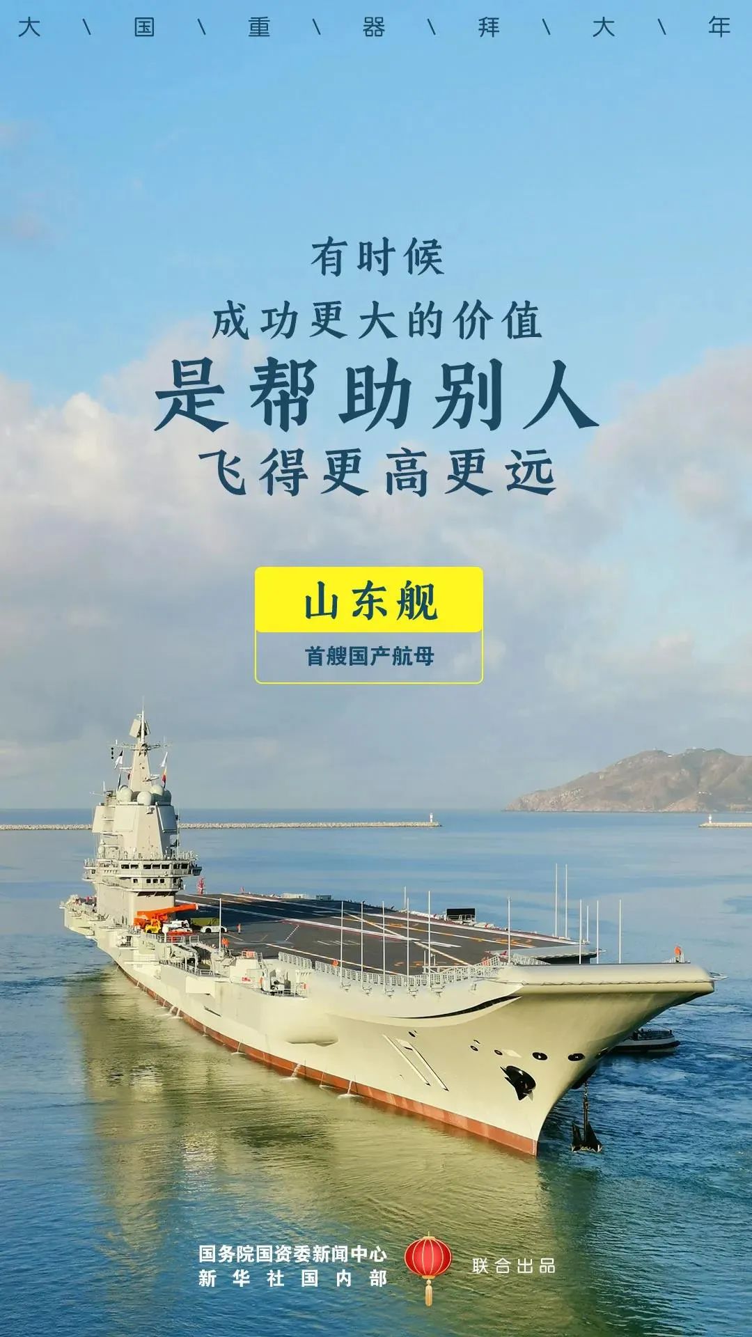 大年初一新年到! 中國船舶給您拜年啦! 知道您收到的祝福已很多 中國船舶的不一樣 送您兩個超級重磅 大國重器拜大年 山東艦 祝您牛氣沖天,一路遠航!