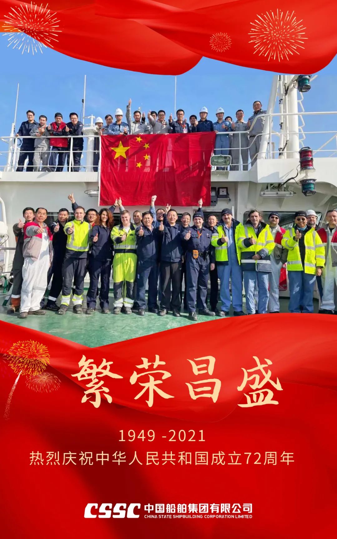 盛世中國,喜迎華誕。在這個舉國歡慶的日子里,中國船舶滬東中華衷心祝愿偉大祖國繁榮昌盛,國泰民安!
