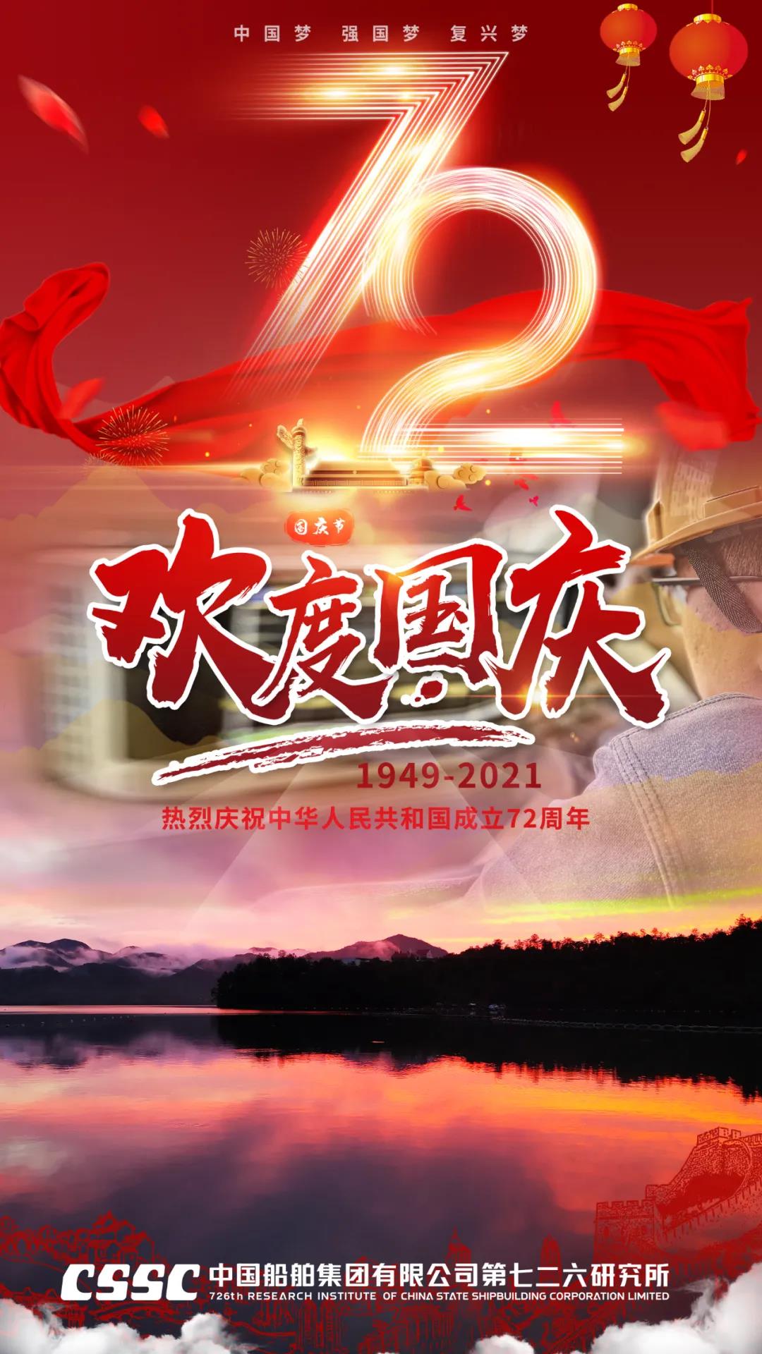 72年篳路藍(lán)縷,72年風(fēng)雨兼程,正值建黨百年之際,恰逢新中國72周年華誕,中國船舶七二六所為祖國獻(xiàn)上最真摯的祝福!祝福偉大祖國繁榮昌盛!七二六人將繼續(xù)用智慧和汗水譜寫水聲華章,用創(chuàng)新和拼搏開拓新時代新征程,為建設(shè)海洋強(qiáng)國貢獻(xiàn)磅礴力量!