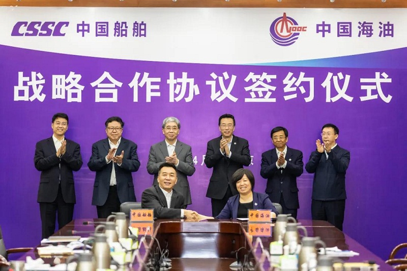????根據(jù)協(xié)議,中國船舶集團和中國海油將建立戰(zhàn)略合作伙伴關(guān)系,充分發(fā)揮在各自領(lǐng)域的優(yōu)勢,在海洋油氣勘探開發(fā)業(yè)務(wù)及相關(guān)裝備、油氣運輸業(yè)務(wù)及相關(guān)裝備、綠色清潔能源拓展、裝備科研開發(fā)等領(lǐng)域開展全方位合作。