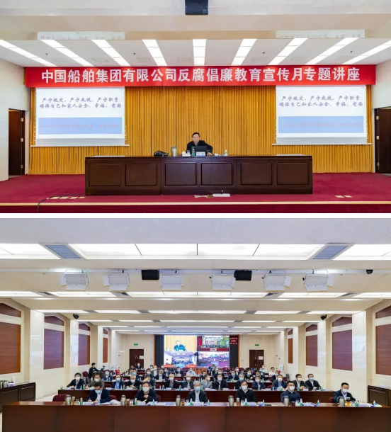 4月7日,中國船舶集團有限公司舉辦反腐倡廉教育宣傳月專題講座,邀請最高人民檢察院第八檢察廳專職副書記、二級高級檢察官時磊進行專題授課。中國船舶集團黨組書記、董事長雷凡培,黨組副書記、總經理楊金成,黨組成員、副總經理錢建平、孫偉、姜仁鋒、盛紀綱參加講座。
