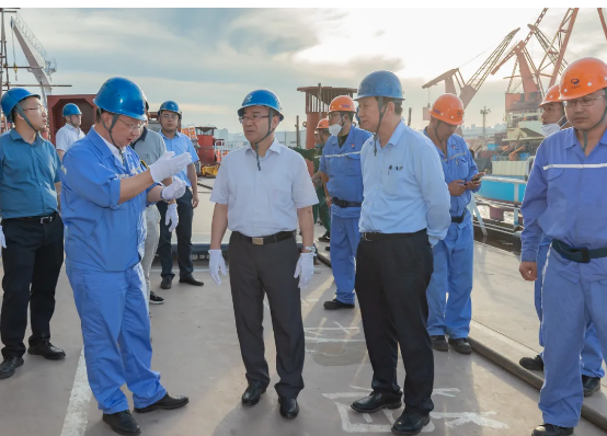 7月21日,工信部黨組成員、總工程師田玉龍到中國(guó)船舶集團(tuán)有限公司大連地區(qū)成員單位調(diào)研指導(dǎo)工作。田玉龍一行先后到中國(guó)船舶集團(tuán)第七六〇研究所、大連船舶重工集團(tuán)有限公司實(shí)地考察了有關(guān)試驗(yàn)場(chǎng)和在建船舶,聽取了兩家單位整體發(fā)展情況特別是科技創(chuàng)新方面的工作匯報(bào),并對(duì)下一步工作提出要求。