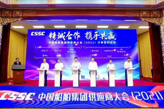 會上,中國船舶集團旗下成員單位分別與鞍鋼股份有限公司、山西太鋼不銹鋼股份有限公司、日鐵物產株式會社等供應商進行了簽約,并為120多家金牌供應商頒發了證書。