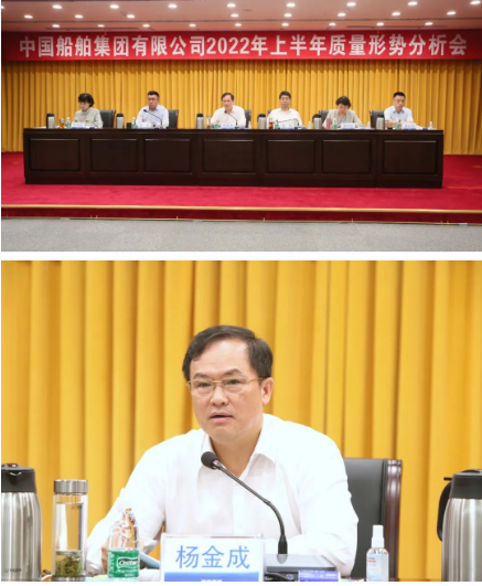 8月30日,中國船舶集團有限公司召開2022年上半年質量形勢分析會。中國船舶集團黨組副書記、總經理楊金成出席會議并講話,黨組副書記、董事杜剛主持會議。黨組成員、副總經理孫偉,紀檢監察組組長、黨組成員李佳穎,黨組成員、總會計師賈海英,黨組成員、副總經理盛紀綱出席會議。孫偉在會上作集團公司2022年上半年質量形勢分析報告,并部署下半年重點質量工作。