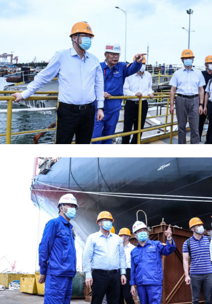 9月22日,中國船舶集團(tuán)有限公司黨組副書記、總經(jīng)理?xiàng)罱鸪傻郊瘓F(tuán)公司旗下江南造船、滬東中華調(diào)研指導(dǎo)工作。楊金成聽取了江南造船、滬東中華近期安全生產(chǎn)、疫情防控、保密保衛(wèi)、信訪維穩(wěn)等工作及生產(chǎn)經(jīng)營情況的匯報,并登上兩家企業(yè)船塢碼頭查看了重點(diǎn)在建船舶進(jìn)展情況。