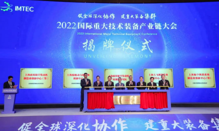 開幕式上,田玉龍、張為、盛紀綱、陳金山、上海市政府副秘書長莊木弟、中國商用飛機有限責任公司總經理趙越讓、中國航發商發公司董事長李軍與中航機載系統公司副總經理鄧平煜共同為上海商用航空發動機產業創新研究院、上海船舶動力制造業創新中心、上海大飛機制造業創新中心(籌)、上海商用航空發動機制造業創新中心(籌)、上海航空機載系統制造業創新中心(籌)揭牌,旨在組建以“鏈長”為引領、大中小企業融通的產業創新研究院和制造業創新中心,進一步強化科技創新策源和高端產業引領功能,實施產業基礎再造和提升產業鏈現代化水平。