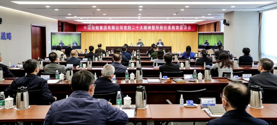 1月30日,中國船舶集團有限公司召開黨的二十大精神暨形勢任務(wù)教育宣講會,動員集團上下全面準(zhǔn)確領(lǐng)會黨的二十大精神,深刻認(rèn)識當(dāng)前世界百年未有之大變局,更好把握當(dāng)前國際國內(nèi)形勢,進(jìn)一步團結(jié)帶領(lǐng)廣大干部職工踔厲奮發(fā)、勇毅前行,加快推進(jìn)世界一流船舶集團建設(shè)。中國船舶集團黨組副書記、總經(jīng)理楊金成主持會議,黨組副書記、董事杜剛,黨組成員、副總經(jīng)理孫偉,紀(jì)檢監(jiān)察組組長、黨組成員李佳穎,黨組成員、總會計師賈海英,黨組成員、副總經(jīng)理盛紀(jì)綱出席會議。會議邀請十三屆全國政協(xié)常委、提案委員會副主任,中央軍委聯(lián)合參謀部原上將副總參謀長戚建國作宣講報告。