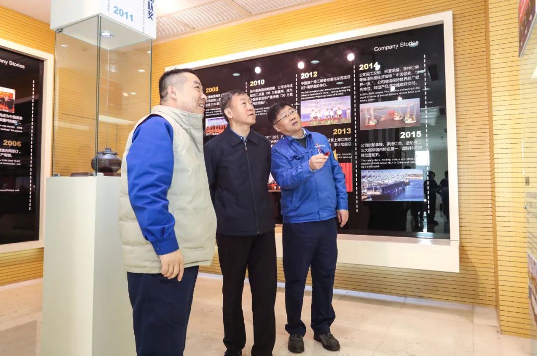 在外高橋造船展廳,溫剛聽取了外高橋造船發(fā)展歷程、戰(zhàn)略定位和主建產(chǎn)品等內(nèi)容的匯報(bào)。在國(guó)產(chǎn)大型郵輪首制船建設(shè)現(xiàn)場(chǎng),溫剛聽取了建造進(jìn)度匯報(bào),并安排部署下一步工作。座談會(huì)上,溫剛聽取了外高橋造船高質(zhì)量發(fā)展戰(zhàn)略、生產(chǎn)經(jīng)營(yíng)情況及黨建重點(diǎn)特色工作的匯報(bào)。