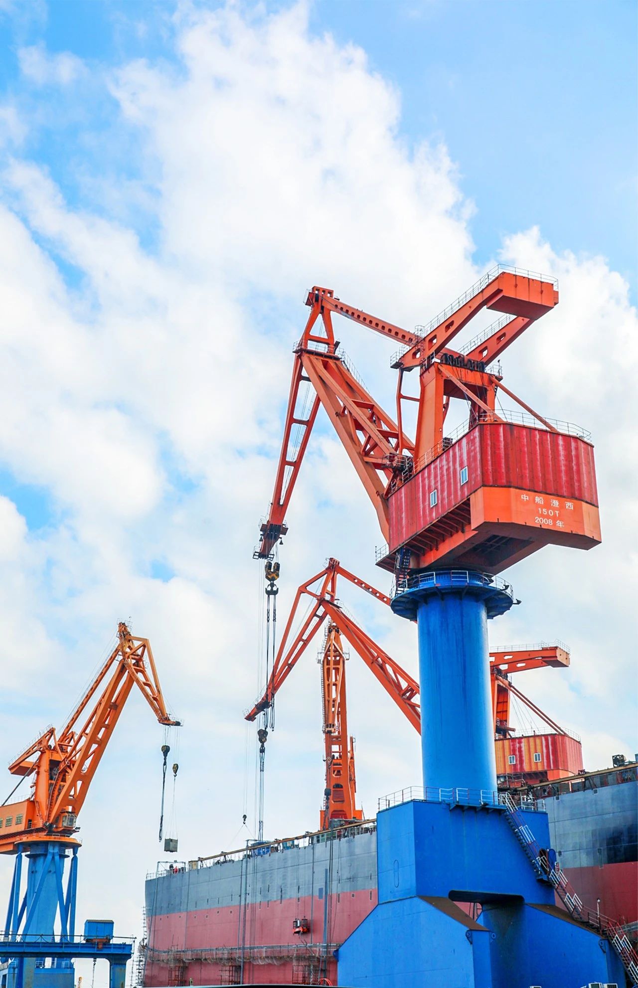 本幅作品拍攝于中船澄西主建船型82000噸散貨船船臺(tái)搭載過(guò)程中,高矮錯(cuò)落的吊臂構(gòu)成了如音符一般的工作樂(lè)潮。