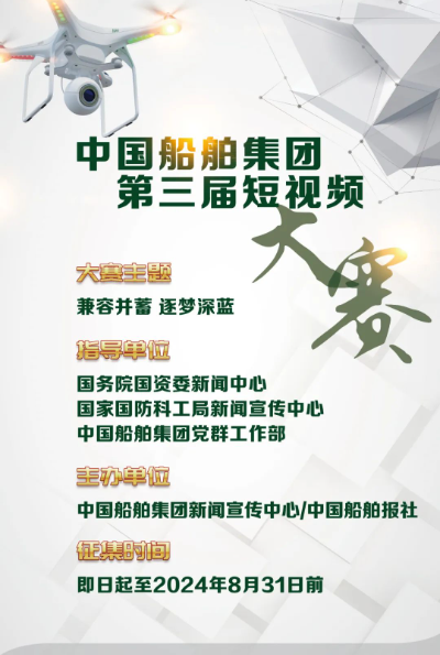 2024年是新中國成立75周年,也是全面貫徹黨的二十大精神的關(guān)鍵之年。這一年,中國船舶集團(tuán)以習(xí)近平新時代中國特色社會主義思想為指導(dǎo),全面實(shí)施“1234”高質(zhì)量發(fā)展方略,以“三贏”提質(zhì)效、以改革求突破、以創(chuàng)新促發(fā)展,全面開創(chuàng)建設(shè)世界一流船舶集團(tuán)新局面。為更加全面生動展示中國船舶人凝心聚力、砥礪奮發(fā),建設(shè)世界一流,向新中國成立75周年獻(xiàn)禮的精神風(fēng)貌與奮斗熱情,中國船舶集團(tuán)新聞宣傳中心/中國船舶報社組織開展“兼容并蓄 逐夢深藍(lán)”為主題的中國船舶集團(tuán)第三屆短視頻大賽。