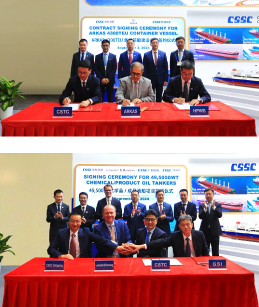 此次展會上,集團公司有關成員單位負責人率隊赴展會開展重點船海項目經營洽談并拜訪當地和周邊國家主要客戶。集團公司以“高端綠色、領跑未來”為參展主題,展臺設置了集團總體區(qū)、高端綠色船舶區(qū)、先進動力配套區(qū)共3個展示區(qū)域,重點展示了首艘國產大型郵輪、27.1萬立方米超大型LNG(液化天然氣)運輸船、10800車LNG雙燃料汽車運輸船、全球首艘LNG雙燃料VLCC(超大型油船)、21萬噸氨燃料散貨船、9.3萬立方米超大型全冷式液化氣船等一系列技術含量高、全球競爭力強的高端綠色船型,以及CPGC-WinGD 10X92DF-M甲醇雙燃料發(fā)動機、船用供氣系統(tǒng)、船用碳捕捉系統(tǒng)、船舶新能源動力系統(tǒng)解決方案等滿足IMO(國際海事組織)當前和未來排放要求的先進動力配套設備,充分彰顯了中國船舶集團的國際化品牌形象及引領國際船舶市場創(chuàng)新發(fā)展的澎湃動力。