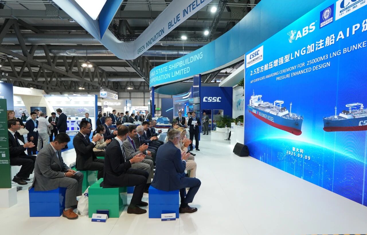 開(kāi)展當(dāng)天,中船集團(tuán)舉辦江南造船五項(xiàng)革新船舶解決方案的AiP頒證儀式、滬東中華2.5萬(wàn)立方米艙壓增強(qiáng)型LNG加注船AiP頒證儀式等專題活動(dòng),吸引了眾多國(guó)際船東、船級(jí)社、設(shè)備廠商等到場(chǎng)觀摩,與參展二級(jí)管理單位交流市場(chǎng)最新熱點(diǎn)并探討未來(lái)合作機(jī)遇。展會(huì)期間,中船集團(tuán)還將組織舉辦 “全球服務(wù)網(wǎng)絡(luò)”說(shuō)明推介會(huì)等多場(chǎng)市場(chǎng)開(kāi)發(fā)專題活動(dòng),精準(zhǔn)高效開(kāi)展技術(shù)產(chǎn)品服務(wù)推介和品牌海外推廣。