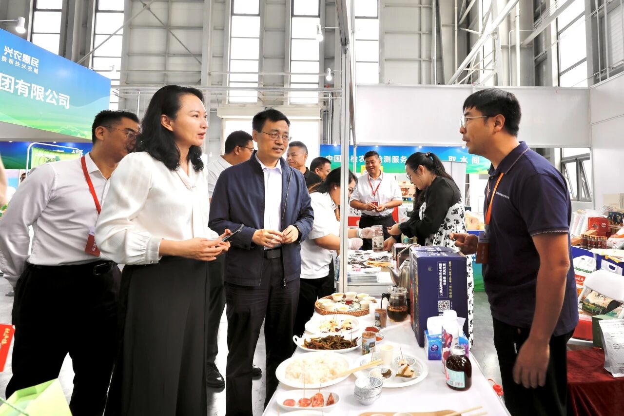 國務(wù)院國資委秘書長莊樹新、國務(wù)院國資委社會責任局局長李軍、農(nóng)業(yè)農(nóng)村部區(qū)域協(xié)作促進司(革命老區(qū)工作辦公室)司長(主任)李富君等領(lǐng)導來到中船集團展區(qū),詢問了解集團公司定點幫扶的進展情況及特色農(nóng)產(chǎn)品相關(guān)信息。
