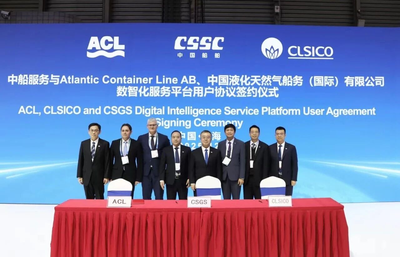 中國(guó)液化天然氣船務(wù)(國(guó)際)有限公司(CLSICO)與意大利Grimaldi集團(tuán)旗下Atlantic Container Line(ACL)作為中船服務(wù)的長(zhǎng)協(xié)服務(wù)簽約客戶,與中船服務(wù)正式簽訂數(shù)智化服務(wù)平臺(tái)用戶協(xié)議,標(biāo)志著CSGS品牌首批標(biāo)桿客戶成功落地。這一合作不僅體現(xiàn)了客戶對(duì)中船集團(tuán)整船服務(wù)能力的信任,也為CSGS全球服務(wù)品牌的推廣樹(shù)立了典范。