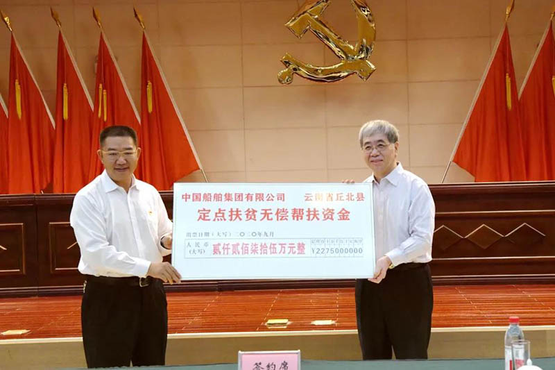 在中國船舶集團?丘北縣定點扶貧工作座談會上,集團公司和丘北縣舉行了無償幫扶資金捐贈儀式、簽署了消費扶貧框架協議,集團公司產業扶貧基金運營公司太證資本與產業扶貧基金投資標的公司立達爾簽訂了投資協議。