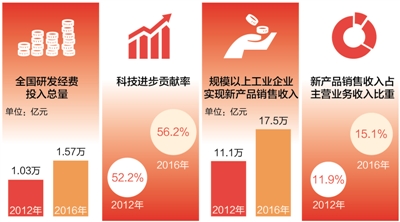 “創(chuàng)新驅(qū)動發(fā)展戰(zhàn)略大力實施,創(chuàng)新型國家建設(shè)成果豐碩,天宮、蛟龍、天眼、悟空、墨子、大飛機等重大科技成果相繼問世。”過去5年間,創(chuàng)新驅(qū)動可謂最大發(fā)展亮點之一。