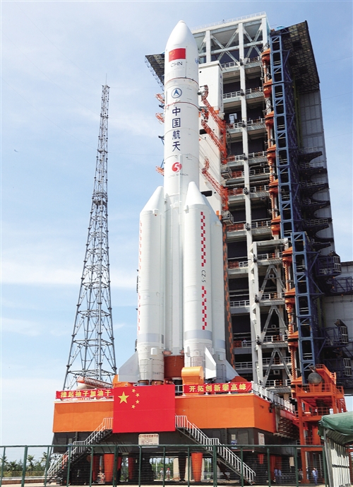 在海南文昌航天發(fā)射場拍攝的長征五號遙二火箭。 張文軍攝 (新華社發(fā))