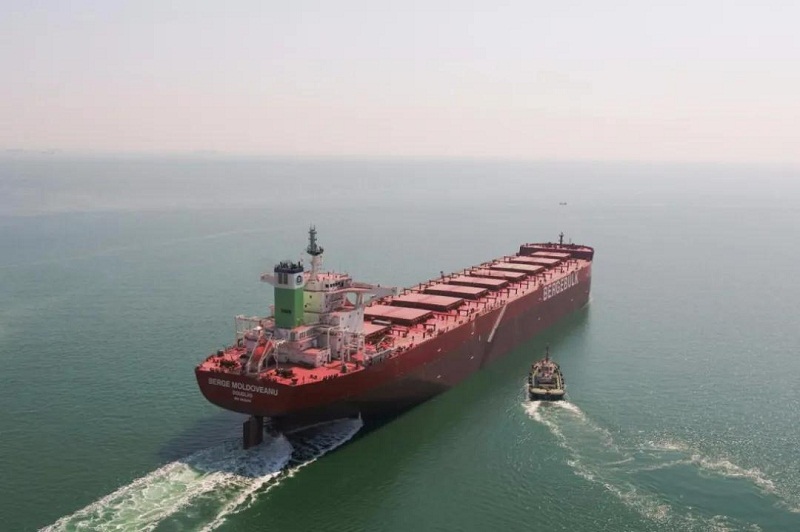 ????近日,中國船舶集團旗下大船集團渤船重工為新加坡百國山公司建造的21萬噸散貨船21號船“BERGE MOLDOVEANU”號簽字交付。該船是渤船重工復工復產后交付的第2艘船舶產品,同時也是渤船重工為百國山公司續建的4艘21萬噸系列散貨船中的第2艘,也是雙方合作15年來交付的第15艘船舶產品。