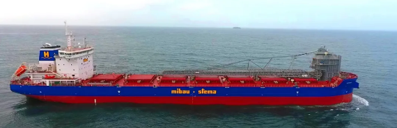 該船船長(zhǎng)190米,型寬29米,設(shè)計(jì)吃水10.5米,全船配置先進(jìn),配備單機(jī)可調(diào)槳CPP、抱軸式軸帶發(fā)電機(jī)、大功率艏艉側(cè)推、貝克舵、混合式脫硫系統(tǒng)和一套具有5500噸/小時(shí)卸貨能力的高效自卸系統(tǒng)。