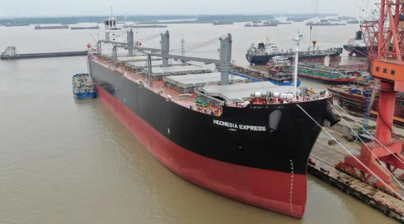 中船澄西為新加坡船東建造的7萬(wàn)噸木屑船于近日?qǐng)A滿(mǎn)交付。該船各項(xiàng)性能效率指標(biāo)處于國(guó)際領(lǐng)先水平。該船船長(zhǎng)215.4米,型寬37米,型深25.2米,自重14980噸,它載貨量大,且綠色環(huán)保油耗低。
