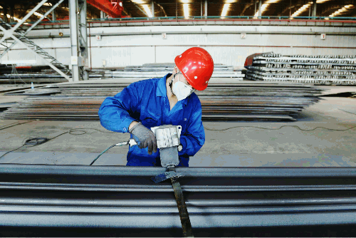 物資公司下屬鞍山公司預(yù)處理車間現(xiàn)場(chǎng),中午最高可達(dá)40°C,工作人員正在進(jìn)行型材預(yù)處理作業(yè),保質(zhì)保量完成物資供應(yīng)。