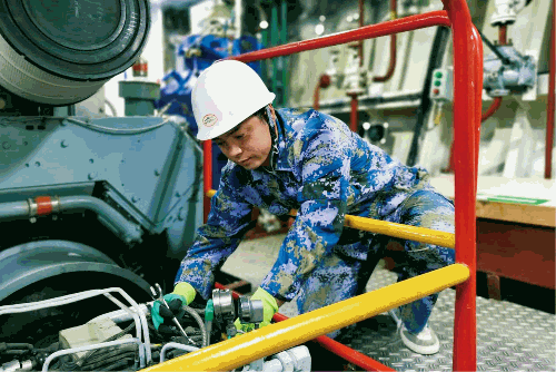 三伏天的機(jī)艙悶熱得像個(gè)蒸籠,溫度超過50°C。面對(duì)突發(fā)的主機(jī)油壓繼電器故障,七六〇所試驗(yàn)中心某船輪機(jī)長(zhǎng)揮汗如雨,迅速排查故障,完成搶修。
