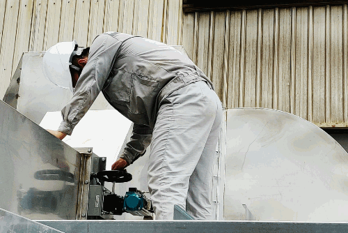 八院海博威集團海通公司環(huán)保工程師,正為滬東中華VOCs廢氣治理項目設備進行調(diào)試。