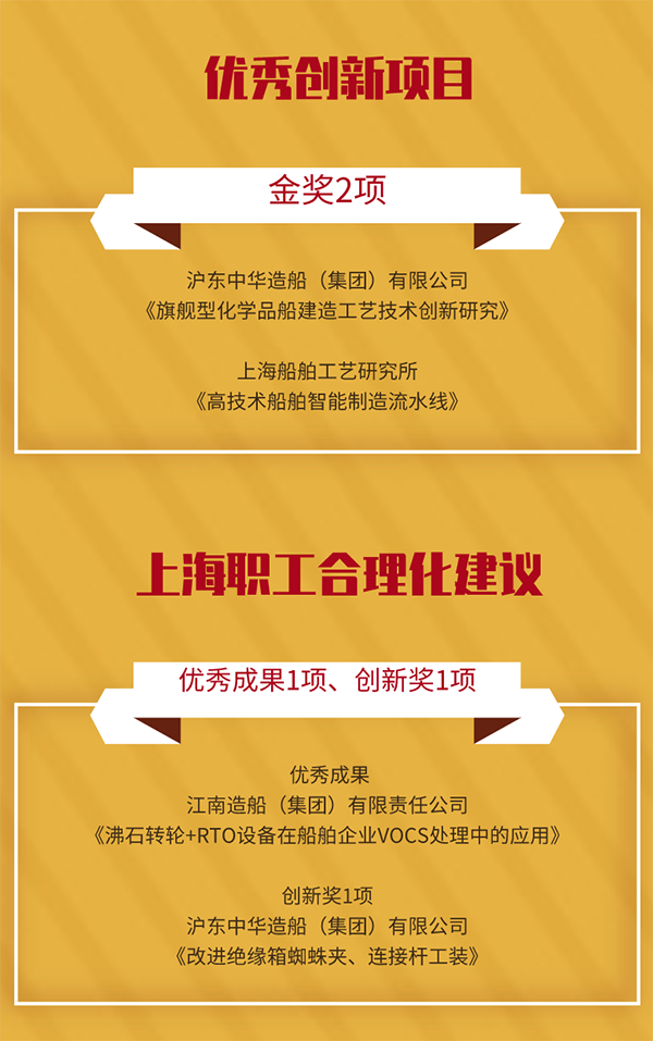 中國船舶集團上海船舶系統共19項職工創新成果,在第32屆上海市優秀發明選拔賽等各項賽事中斬獲佳績。