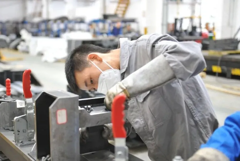 看,昆船公司小伙伴認真的眼神。他正專注于成都機場輸送設備的零部件焊接裝卡工作。
