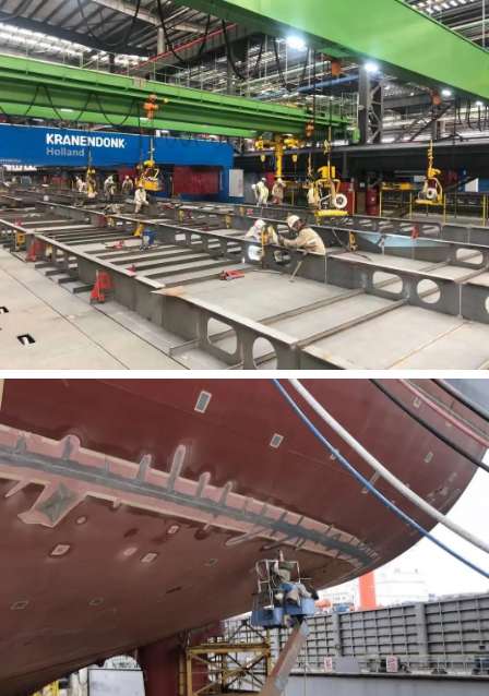 安環保衛部安保消員工堅守崗位,保障大型郵輪作業安全;集配部碼頭鋼板抓緊卸貨,全力保障生產;制造二部400余名員工投入大型郵輪薄板分段建造;涂裝部800余名員工對大型郵輪/民船關鍵項目進行涂裝;搭載部1300余名員工堅守崗位保證船塢節點;總裝一部400余人圍繞止鏈器/艙口圍導軌安裝等開展生產,總裝二部對大型郵輪總段扣壓管穿艙件進行焊接;生產保障部開展大型郵輪臨時電力系統新式電箱改造。