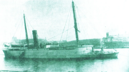 △我國(guó)第一艘自行設(shè)計(jì)建造的淺水炮艇“海東雄”號(hào)(蚊子船)