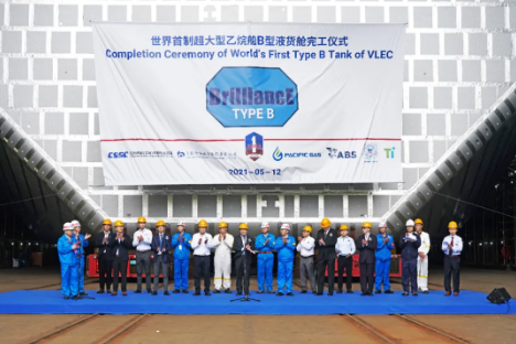 5月12日,中國船舶集團(tuán)旗下江南造船舉行了世界首制99000立方米超大型液化乙烷運(yùn)輸船 (VLEC) 首個(gè)B型液貨艙完工儀式,標(biāo)志江南造船99000立方米VLEC建造實(shí)現(xiàn)關(guān)鍵技術(shù)突破,其自主研發(fā)的“BrilliancE?”貨物圍護(hù)系統(tǒng)實(shí)現(xiàn)工程化和節(jié)拍化生產(chǎn)。