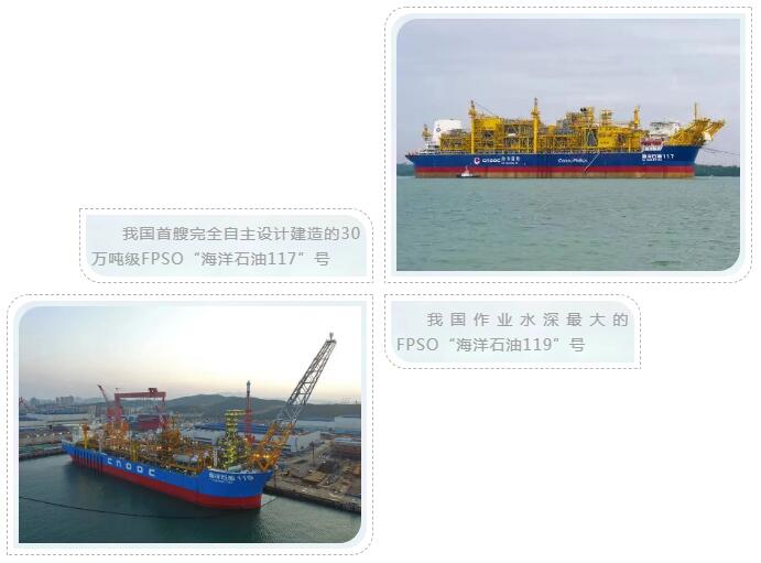 自20世紀80年代中期至今,七〇八所研發設計了十幾艘FPSO,從開始的5萬噸級發展到30萬噸級,秉持自主創新的初心,不斷創造新的紀錄。