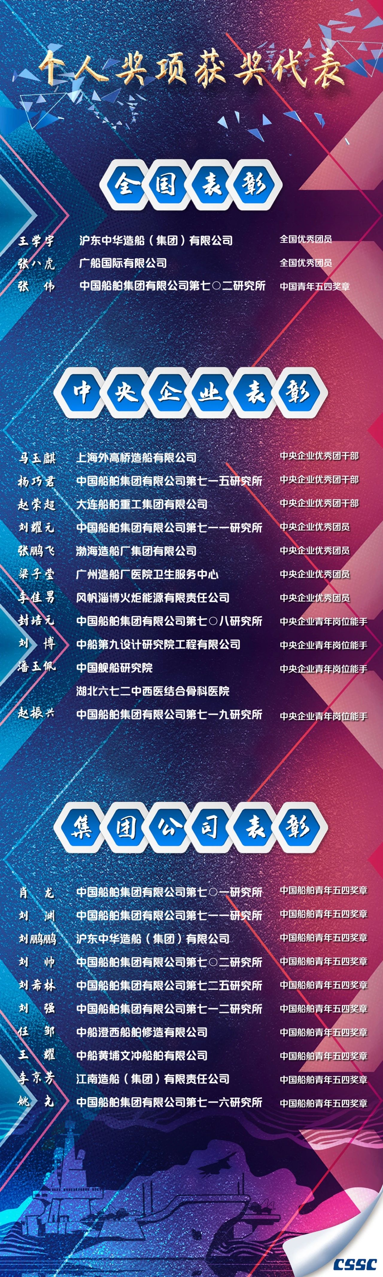 有的在生產一線不畏艱難、埋頭苦干,有的在服務集團發(fā)展的最基層不計得失、任勞任怨。他們把個人理想融入世界一流船舶集團的偉大事業(yè)中,書寫著新時代的青春答卷,彰顯著新時代青年的責任與擔當,為船舶青年作出了榜樣,樹立了標桿。