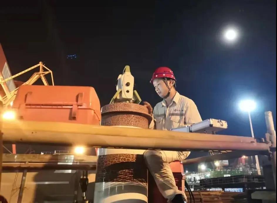 9月26日,廣船國際船運事業部創造性地利用大功率卷揚機與拖輪配合,通過卷揚機帶纜的方式實現了駁船的完美“倒車入庫”。與此同時,還需要檢查各項精度指標,確保管節鋼殼精確定位、平穩上岸坐墩。