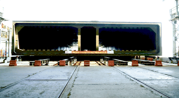E15管節鋼殼于8月23日過駁交運。緊接著,E16管節鋼殼于8月24日完成縱移,于9月24日通過廠內聯合驗收,從縱移到完成交付僅用時1個月,創造了目前為止的最短周期紀錄。
