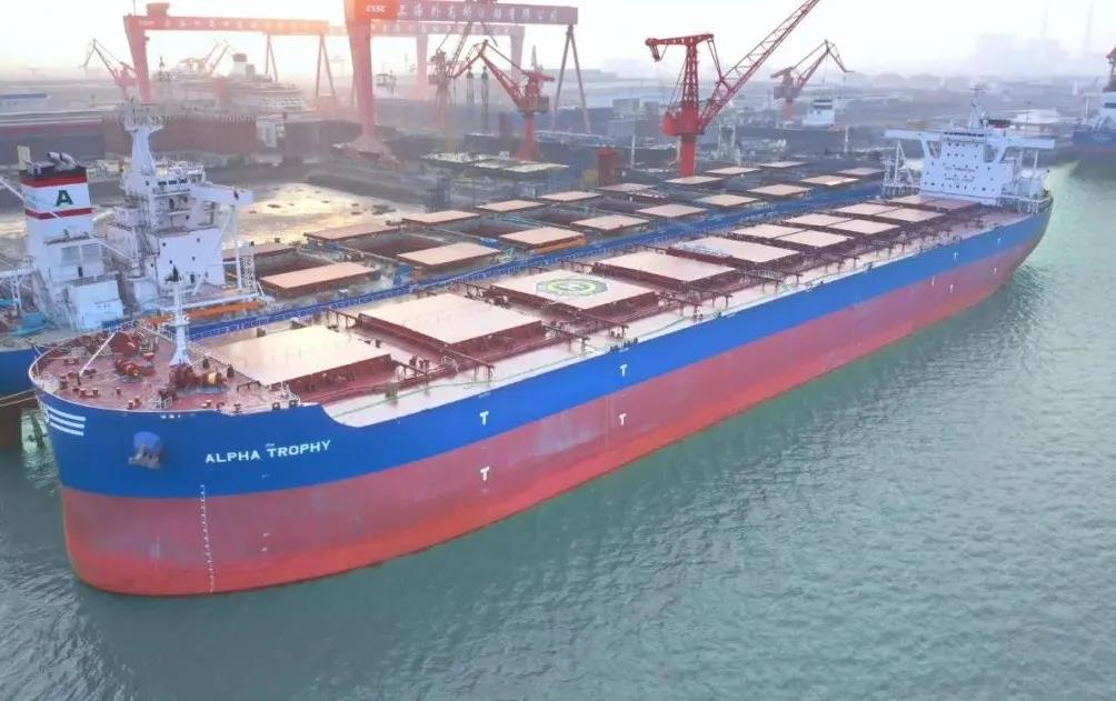 1月1日上午,中國(guó)船舶集團(tuán)旗下外高橋造船聯(lián)合中船貿(mào)易建造的21萬(wàn)噸紐卡斯?fàn)栃蜕⒇洿癆LPHA TROPHY”號(hào)簽字交船,這是中國(guó)船舶企業(yè)新的一年完工交付的第一艘船,開(kāi)啟中國(guó)船舶制造業(yè)2022年昂揚(yáng)奮進(jìn)新征程。
