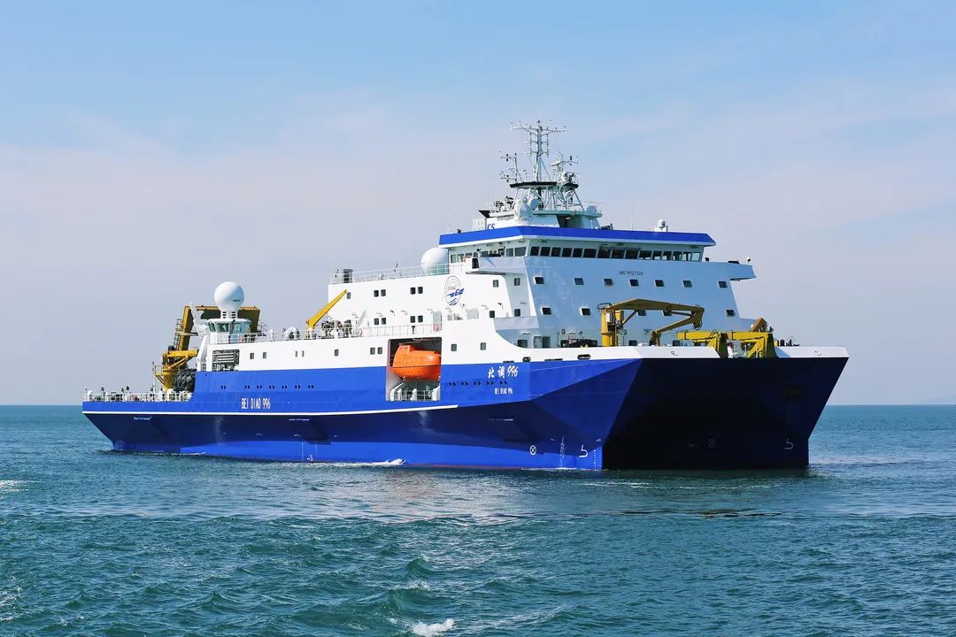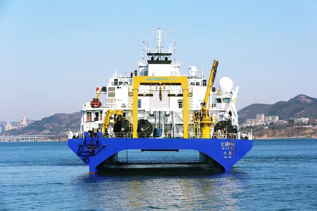 小水線面雙體船是一種水線面積小,且由兩個(gè)潛水體和一個(gè)水上箱體,中間有兩個(gè)流線型支柱連接起來(lái)的船舶。該船型耐波性好,能夠很好地解決深海作業(yè)浪大、波峰高等問題,利于在深海開展試驗(yàn)工作。該船于2019年8月26日開工,2021年3月20日下水,2022年3月23日完工,歷時(shí)2年零7個(gè)月時(shí)間。該船總長(zhǎng)99.8米,型寬32米,吃水7.5米,型深13.2米,航速15節(jié),排水量6700噸。