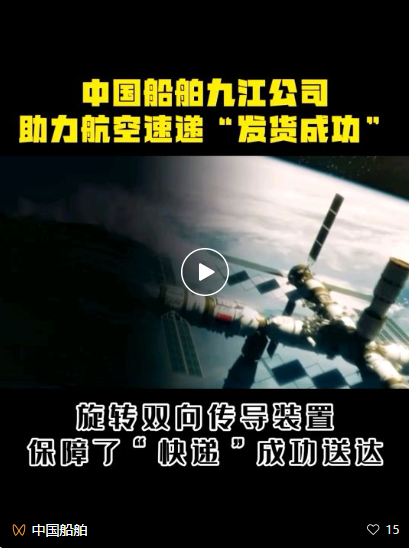 天舟四號貨運飛船是我國空間站建造階段的首發航天器,其作用是為空間站運輸物資、補給燃料、下行廢棄物,具備并網供電、應急通信等能力,確保空間站組合體在軌平穩運行。在本次發射任務中,中國船舶集團旗下中船九江承擔旋轉雙向傳導裝置的研制工作,保障了“天舟四號”快遞成功送達。作為空間站建造階段的“首艘船”,承載著中船九江人的智慧與心血。