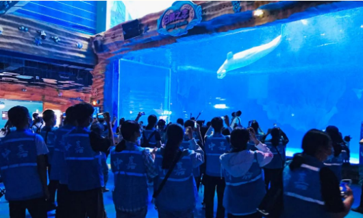 #8月2日下午,師生們前往昆明融創海世界游覽參觀。蔚藍的海洋館、童趣可愛的雨林劇場,仿佛經歷了一次探索海洋奧秘、體驗奇妙環海之旅,令師生們興奮不已,流連忘返?!帮w躍云南”讓師生們從另一個角度欣賞了洱海的大美、西雙版納的幽靜、普者黑的飄然出塵,更激發了師生們對家鄉對祖國的熱愛。