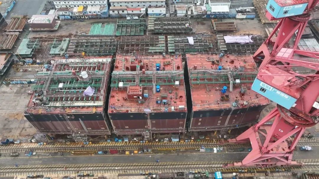 來欣賞“拼積木” ,這就叫環(huán)形總段總組工藝。