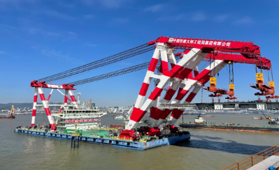 自2022年1月22日進場,歷時692天,“鐵建大橋起1”號起重船完成了主橋、引橋和匝道共72節段鋼梁吊裝任務,是名副其實的“架橋神器”。該船起重機吊運平衡系統還榮獲澳門勞工事務局頒發的“安全改善項目銅獎”。