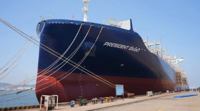 北海造船和中船貿易作為聯合賣方,為達飛海運集團建造的第2艘5500TEU集裝箱船命名。5500TEU集裝箱船項目為達飛公司與北海造船首次合作的新造船項目,該系列新造船包含10艘船舶,首制船“CMA CGM SAHARA”號已于今年2月1日交付,此次命名的“PRESIDENT GRANT”號為該系列船的第2艘船。