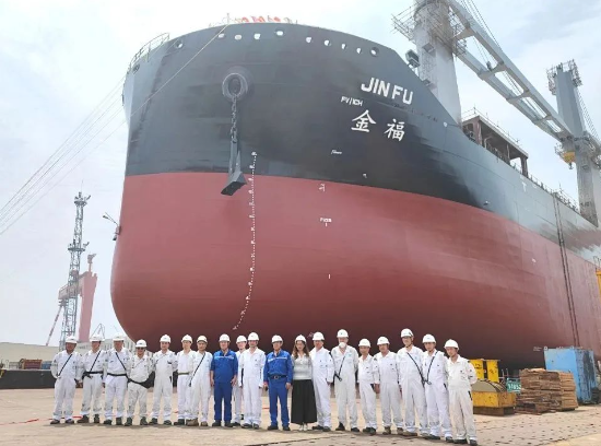 近日,中船澄西為交銀金租建造的62000噸重吊船勝利下水。該船作為系列船的第3艘船,實現(xiàn)了15天艉部貫通,21天主船體一條龍,25天拉線望光,47天高質(zhì)量船臺下水的好成績。
