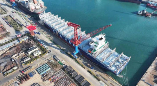 截至目前,北海造船新能源動力船舶造船訂單達50余艘,覆蓋了LNG、甲醇及氨燃料等船型,綠色船型訂單在手持訂單總量中的占比超90%;成功承接的全球首制32.5萬噸甲醇燃料超大型礦砂船(VLOC)和全球首制21萬噸氨燃料散貨船系列訂單引領了大型主力船舶綠色低碳發展方向,已經開工的31.9萬噸氨燃料預留VLCC未來可配置兩個6000立方米氨燃料儲罐,為實現船舶“零碳”運營奠定了堅實基礎。在修船領域,北海造船成功承接了2艘10000TEU集裝箱船甲醇雙燃料改裝項目,此外,Moss型LNG運輸船改造為海上浮式儲存裝置的沃德福液化天然氣改裝船(FST)項目也正有序施工。