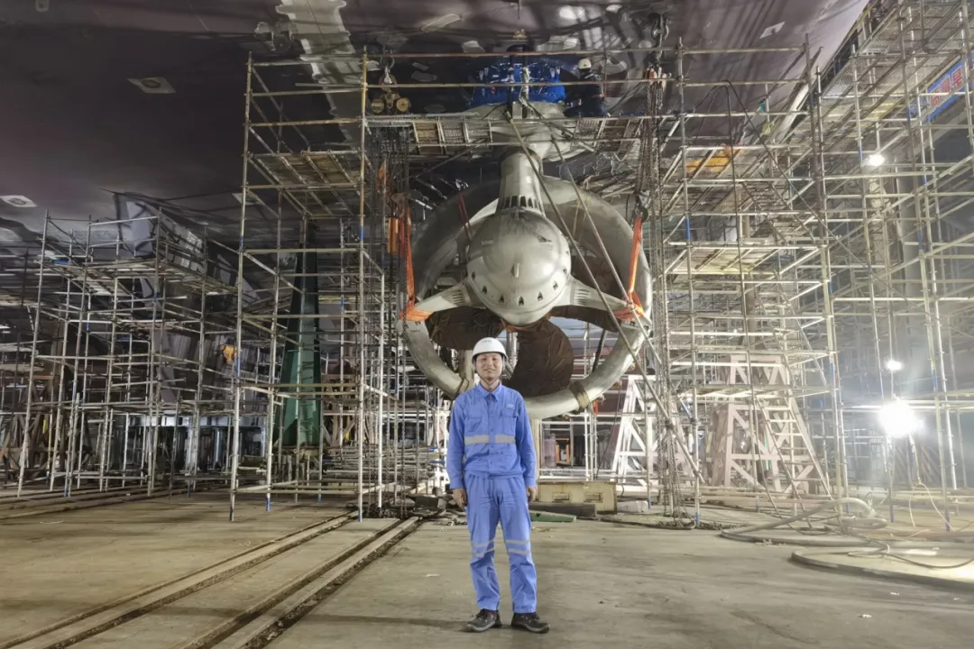 “機艙就像一個大號悶罐!”項目副經(jīng)理吳澤奇和工程師黃歡在廣州濕熱的天氣和機艙內(nèi)50℃以上的高溫中,連續(xù)通宵作戰(zhàn),在30天內(nèi)零差錯完成伸縮推進器的安裝后,又協(xié)調(diào)其他施工方序時推進主推進器安裝工作。