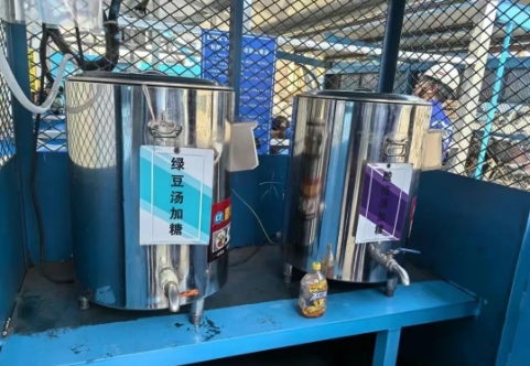 七月以來(lái),持續(xù)高溫天氣給一線員工帶來(lái)嚴(yán)峻考驗(yàn)。北海造船充分利用現(xiàn)有空間,共搭建45處現(xiàn)場(chǎng)員工休息點(diǎn),配備234套餐整體式桌椅和246個(gè)長(zhǎng)條椅,改善現(xiàn)場(chǎng)休息環(huán)境;為在高溫下堅(jiān)守崗位的142個(gè)一線班組職工送去防暑降溫禮包,為一線員工配備飲水點(diǎn),供應(yīng)綠豆湯、酸梅湯、大桶水,發(fā)放防暑降溫藥品;根據(jù)天氣情況動(dòng)態(tài)調(diào)整夏季室外露天作業(yè)時(shí)間,采取錯(cuò)峰避讓高溫時(shí)段、換班輪休等方式,在無(wú)立體交叉作業(yè)區(qū)域,設(shè)置遮陽(yáng)網(wǎng)避免陽(yáng)光直曬,在船艙/密閉空間安裝風(fēng)機(jī)、除濕機(jī),作業(yè)前30分鐘進(jìn)行通風(fēng)、除濕,為艙室作業(yè)人員提供防護(hù);組織高溫作業(yè)職工進(jìn)行身體健康檢查,開(kāi)展防暑降溫培訓(xùn)和應(yīng)急演練,提升職工自我保護(hù)意識(shí)和應(yīng)急處置能力。