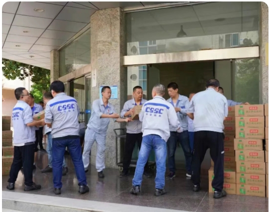 供應充足的冷飲和食品,貼心配備的應急防暑藥品,更科學調整高溫時段作息……,中船集團旗下系統工程研究院、七〇五所/中船華雷中船物資、華南船機防暑降溫有“涼”策,暖心關愛送“溫”情。