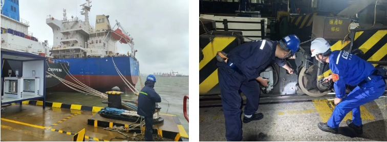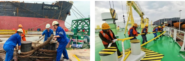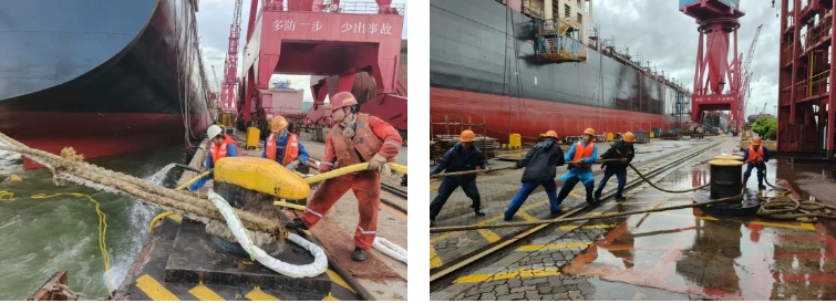 臺風(fēng)肆虐時,組織管理人員抗臺值守,以“臺風(fēng)不撤,我們不撤”的原則堅(jiān)守一線。臺風(fēng)預(yù)警解除后,10小時內(nèi)完成登船梯搭設(shè)及纜繩解除,迅速恢復(fù)正常生產(chǎn)。憑借科學(xué)預(yù)案與堅(jiān)守,最終實(shí)現(xiàn)纜繩零斷裂、船舶零移位,有力保障了生命財產(chǎn)安全。